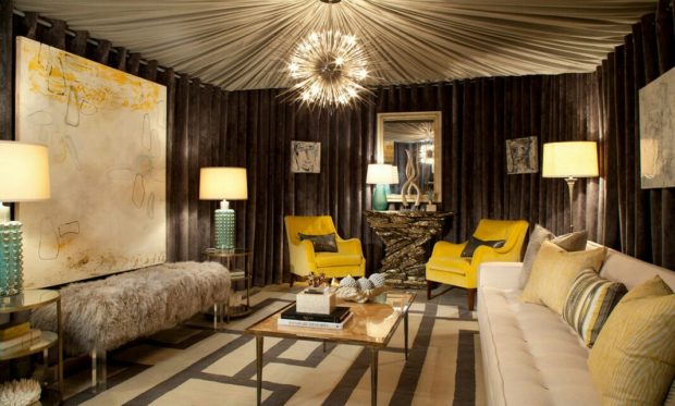 Si vous préférez plus intérieurs sombres et souhaitez obtenir l'effet d'intimité, vous pouvez décorer les murs dans des tons chocolat. L'essentiel est que vous ne ressentiez pas de sensation pressante. Évitez ça bon éclairage. Que la pièce ne semblait pas petit et à l'étroit, vous devez mettre en évidence les murs. Vous pouvez organiser autour du périmètre de la pièce, à une distance de 30-40 cm des murs lumière spot au plafond. La lumière des petites lampes tombera magnifiquement sur les murs à l'angle requis et créera une atmosphère très confortable. L'option avec appliques murales qui sont faites sous la forme de demi-cylindres fermés, et les rayons lumineux se propagent dans un flux conique de haut en bas du corps de la lampe. La pièce paraîtra donc encore plus haute. Compléter ces petites sources lumineuses aidera lampadaire avec sortie lumineuse directionnelle. Vous pouvez changer la position du plafond à votre guise et créer à chaque fois une nouvelle atmosphère.