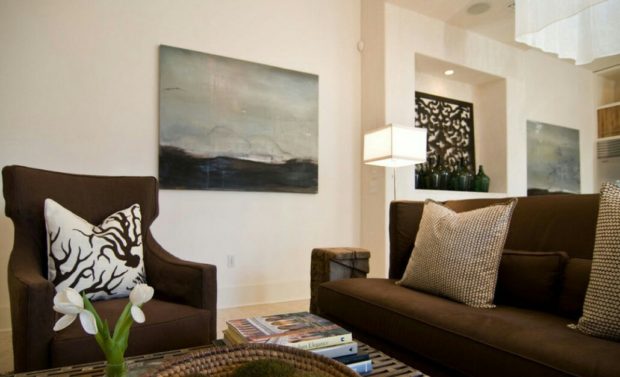 Le salon ainsi décoré sera symboliser le calme et démontrer stabilité et bien-être les propriétaires de la maison. Indéniable avantage ce sera que la couleur brune s'intègre avec succès dans intérieur en n'importe quel style. Ses différentes teintes aideront à créer la douceur souhaitée dans cette pièce. La chose principale - Ne complétez pas toutes les surfaces entièrement dans cette couleur, en les complétant avec des meubles bruns. Ces l'intérieur sera très sombre et oppressant. Utilisez toujours des accents neutres ou vibrants.