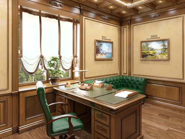 Pendant la décoration intérieure compte personnel souvent la tâche est de rendre la pièce calme, en accord avec les activités productives, et qui ne distraira pas et ne dispersera pas l'attention. Dans ce cas les murs recommander d'émettre des tons sable ou caramel, et sexe et les meubles choisissent des nuances de chocolat. Pour faire un peu rafraîchir la pièce utilisez des éléments de décoration blancs. Les surfaces en verre foncé d'un bureau ou des étagères murales s'intègrent parfaitement. Après tout, ces pièces sont généralement de petite taille et les meubles en verre semblent moins encombrants.