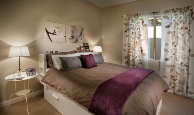 - Marron + pourpre - c'est le plus relaxant de possible les options. Si vous êtes très fatigué au travail, mentalement et physiquement, et lorsque vous rentrez chez vous, vous ne rêvez que de vous allonger et de ne penser à rien, alors vous avez trouvé l'intérieur parfait pour cela. Une pièce décorée avec des nuances plus foncées des deux couleurs aura un peu mystérieux et image mystique. Tout se passera dedans, comme au ralenti. Vous n'avez même pas envie de bouger, mais seulement une un sentiment de paix. C'est parfait pour chambres. Cependant, l'ayant diversifié avec de petits éléments de nuances plus claires d'une tonalité différente, il s'avérera intéressant de concevoir la salle de bain.