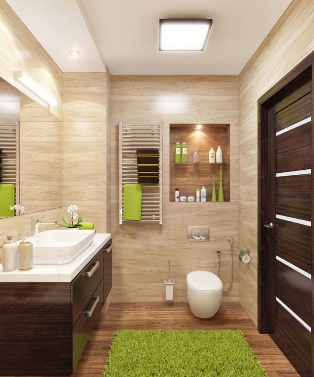 - Marron + vert - le plus combinaison harmonieuse. Il crée un sentiment d'unité avec la nature et ressemble à une forêt de feuillus. De nombreux designers ont du mal à travailler avec le vert comme couleur principale, mais dans ce cas, l'une de ses nuances sera avoir l'air harmonieux dans l'union avec brun. Si vous utilisez la dernière couleur comme couleur de base, vous pouvez la compléter en tandem avec plusieurs nuances de vert et de blanc. Si l'intérieur n'est pas supposé utiliser des nuances supplémentaires alors ce sera le plus de succès vert pomme ton. Le fait est qu'il est à la fois riche et doux, et parfaitement en harmonie avec le beige ou le sable, et avec un ton chocolat.