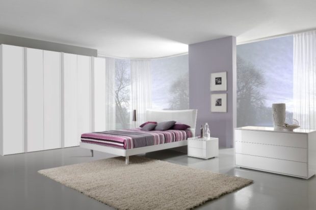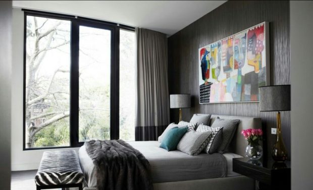 Se souvenir du possible impact négatif gris lorsqu'il est surutilisé, envisagez de le combiner avec du bleu, du vert, du jaune, du rose ou du violet. Ces options sont meilleures que d'autres pour une pièce dans laquelle vous devez vous détendre complètement. Dans le contexte des murs calmes aura l'air bien blanc, noir et meubles brun foncé. Même les objets volumineux et volumineux sembleront moins globalement, vous pouvez donc vous permettre en toute sécurité le lit ou solide commode.