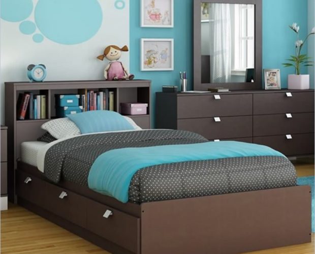- Gris + bleu ou bleu – combinaison cool ce qui est parfait pour enregistrement de n'importe quelle pièce. Que ce soit une salle de bain, une pépinière ou une chambre. Si tous les locaux répertoriés ont petites tailles il vaut mieux privilégier les teintes claires et sourdes. Dans comme base Vous pouvez utiliser des nuances de gris et de bleu, selon vos préférences. Diluez l'atmosphère la couleur blanche aidera, qui peut être utilisée à la fois pour la décoration murale et les éléments de décoration. Par exemple dans la chambre ou dans enfants le gris peut être légèrement déprimant, vous ne devez donc pas l'utiliser pour finir tous les murs. Choisissez-en un, le mur le plus étroit pour cela, et placez-le sur son arrière-plan lit blanc avec un couvre-lit gris et des oreillers bleus. Rideaux peut être bleu avec un motif gris, ou vice versa. Pour une chambre qui a suffisamment de lumière naturelle et est de grande taille, vous pouvez utiliser des nuances sombres gris combiné avec turquoise. Un tel intérieur sera plus intense et inhabituel.