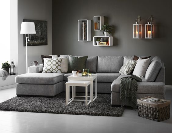Il n'est pas nécessaire de peindre tous les murs de couleur foncée, un seul mur distinctif avec du gris clair suffit. Un peu les blancs ou parties noires créera un volume supplémentaire.Dans les chambres décorées de cette façon, elles sont magnifiques lustres en cristal. Malheureusement, cette option est raisonnable à utiliser uniquement pour chambres spacieuses. Petits salons nécessitent plus de tons clairs. Cependant, un mur sombre et des meubles dans des tons multicolores atténués peuvent être utilisés en toute sécurité. Une telle technique est même un peu agrandir l'espace mais en même temps, l'effet de chambre et de confort sera créé. Exactement ce dont vous avez besoin pour cette pièce. Trouver de tels meubles est souvent très difficile, mais ce n'est pas une raison pour abandonner une si merveilleuse idée. Dans ce cas, les murs doivent être décorés dans des couleurs claires, et les meubles choisir tons gris foncé. Sur son fond, disposez des oreillers colorés et ramassez les rideaux dans le ton.Couleur distinctive peut-être petit table basse ou tapis. Planchers doit être décoré dans des couleurs plus foncées ou, inversement, pour correspondre à la couleur des murs.