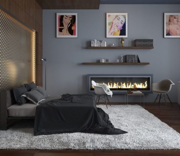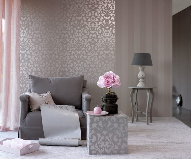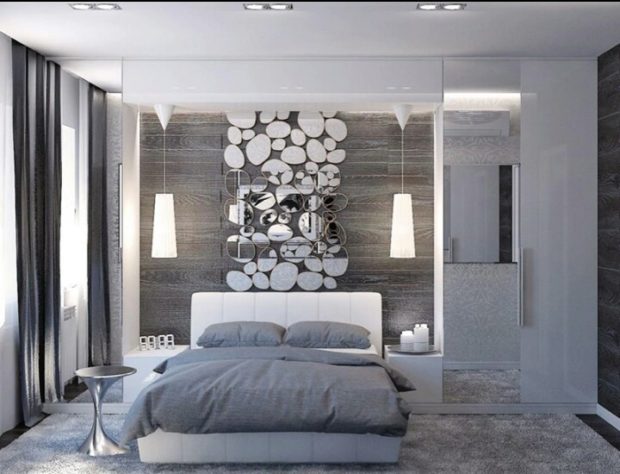 Décoration murale différent nuances de gris – solution optimale pour une utilisation dans cette salle. L'option la plus populaire pour la décoration murale dans la chambre est toujours papier peint. Bien que beaucoup les préfèrent composés colorants, selon la perception, ils sont plus chauds et plus confortables. Grande couleur grise sur surfaces texturées. De préférence choisir le plus couleurs claires qui seront esthétiquement agréables et pas aussi sombres que les sombres. De plus, des murs clairs aideront à faire petite chambre visuellement plus. Si les murs unis vous semblent ternes, vous pouvez diversifier le décor en utilisant des motifs brillants sur l'un d'eux. L'ornement en acier sur la finition gris mat sera inhabituel et élégant. En raison de sa neutralité, le gris sera un grand fond pour vos couleurs vives préférées et aider à les nuancer et les rendre plus saturés. Compte tenu de cette fonctionnalité, vous pouvez habilement compléter l'image globale avec des motifs géométriques ou végétaux intéressants.