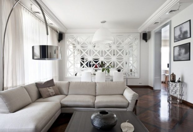 Carrelage miroir dans le design du salon ou de la chambre