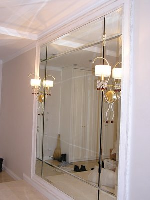 Et souviens toi que l'effet de l'augmentation de l'espace est obtenu précisément en raison de la présence de réflexion dans les éléments miroirs. Il est donc très important sujet de réflexion. L'intérieur doit être soigneusement pensé. Vous voyez, si une immense armoire se reflète dans votre mur de miroir un nombre infini de fois, alors vous aurez l'impression que vous êtes dans une grotte. Et une impression complètement différente sera créée par la réflexion de l'ouverture de la fenêtre et de la lumière du soleil. Soigneusement choisissez l'emplacement - c'est la clé d'un résultat réussi. Réfléchissez également à l'emplacement des appareils d'éclairage. L'éblouissement et les rayons du soleil peuvent perturber et fatiguer la vision. Par conséquent luminaires mieux placé sur les bords, et non en face des miroirs. Ensuite, la lumière d'eux sera réfléchie de la surface plus doucement, tangentiellement et ne créera pas d'inconfort.