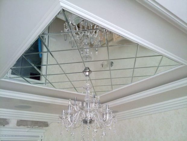 - Afficher utilisé tuiles devrait dépendre du type de plafond. Les plafonds en béton et à la mer peuvent résister à du vrai verre. Pour la décoration plafonds tendus utiliser un film PVC miroir. Et les plafonds suspendus de type Armstrong impliquent l'utilisation de matériaux légers à base de plastique.