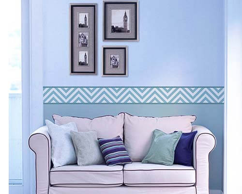 - Lors du choix d'un ruban pour papier peint uni, privilégiez une teinte plus foncée;
