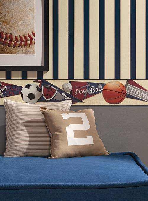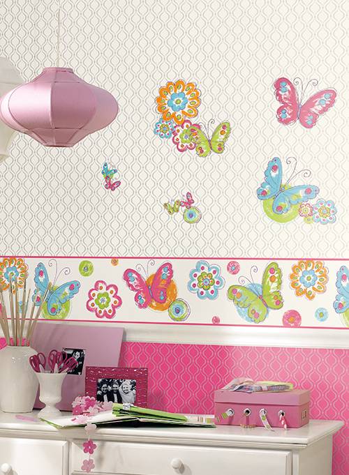 Il est très réussi d'appliquer une bordure avec des motifs dans chambres spacieusesoù un accent particulier est mis sur les murs. En face d'eux, tout meuble peut être totalement absent. Cette option est également optimal pour décoration enfant chambres. Vous avez probablement souvent rencontré le fait que des parents attentionnés essayent de rendre la vie de leur enfant aussi colorée et colorée que possible et de lui plaire de toutes les manières. À cet égard, ils distinguent la pièce en fonction des préférences de l'enfant. Fonds d'écran souvent à thème ou fond d'écran photo avec des personnages de leurs dessins animés préférés. L'affaire est coûteuse et n'est pas entièrement justifiée. En effet, à un âge précoce, l'enfant change très souvent et rapidement ses hobbies. Aujourd'hui, il était ravi des dinosaures, et demain il s'est intéressé aux avions ... C'est pourquoi il est beaucoup plus facile, plus rapide et plus économique de remplacer une bordure par une image ennuyeuse et déjà hors de propos que de recoller du papier peint dans toute la pièce.