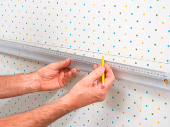 - Suivez clairement le balisage. Étant donné que le ruban de bordure est souvent collé en premier lieu, il définira la direction du papier peint principal. En cas de biais, il est préférable de transférer le travail.