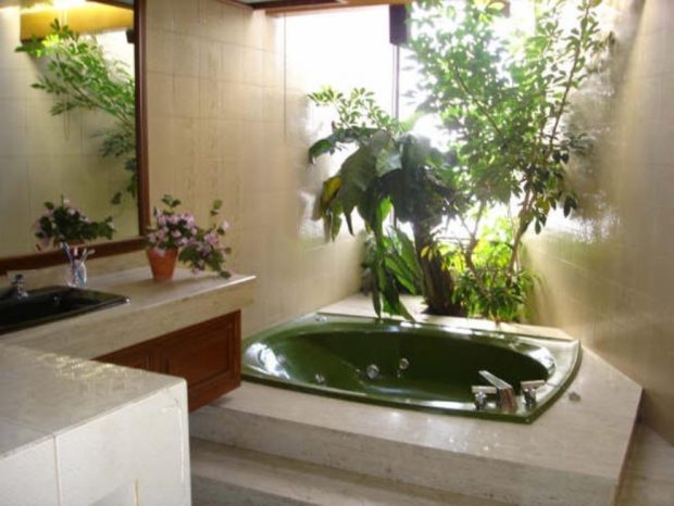 - Une autre option inhabituelle et saine pour limiter la vue sur votre bain depuis la rue est barrage en direct. Nous parlons de plantes d'intérieur, elles doivent être plantées dans un pot qui prendra toute la longueur rebord de fenêtre. Dans une atmosphère très humide, ils seront très confortables. Et l'intérieur grâce à eux prendra instantanément vie. Vous pouvez créer un mini-jardin sur votre rebord de fenêtre à partir de plantes de différents types.