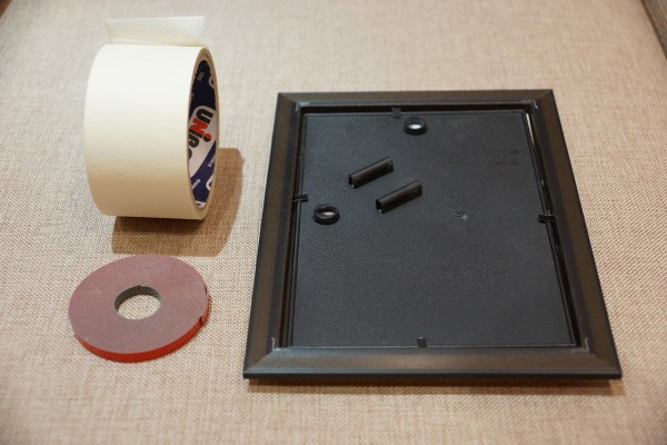 Vous pouvez immédiatement utiliser du ruban adhésif double face sur une base de tissu, qui est retiré sans laisser de trace à n'importe quel angle et de n'importe quel revêtement. Il existe une telle variété que le ruban mousse, qui peut supporter des charges beaucoup plus importantes. Il peut être utilisé pour fixer de petites peintures ou photographies dans un cadre en plastique.