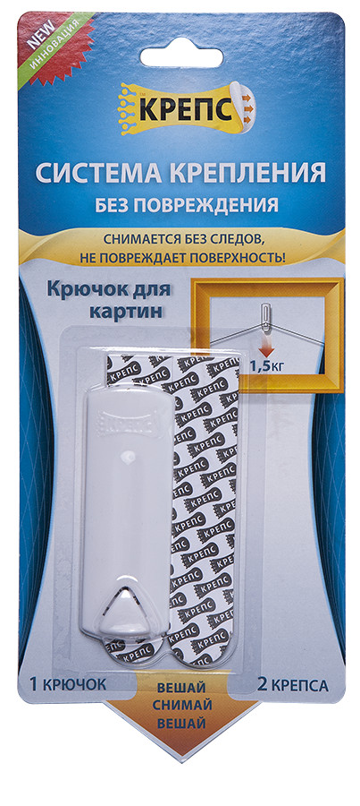 Le système est un élément en plastique dont le dos est plat et a une couche adhésive. La surface du mur doit être lisse et uniforme. Il s'avérera alors fournir une grande fiabilité de fixation. La partie inférieure de l'appareil est extensible et comporte plusieurs rangées de petits crochets. L'utilisation de ce système est très simple, même pour la première fois. Il est nécessaire de retirer le ruban de protection du ruban adhésif et de le coller du mauvais côté du crochet. Vous devez maintenant retirer le ruban de protection du deuxième côté et appuyer le crochet contre le mur. Appuyez fermement pendant 30 secondes. Vous pouvez maintenant accrocher une photo. Charge maximale sur un "craps" est de 1,5 kg. Pour accrocher un article plus gros, utilisez plusieurs attaches. L'essentiel est de les disposer uniformément pour assurer un ajustement parfait de l'image au mur.