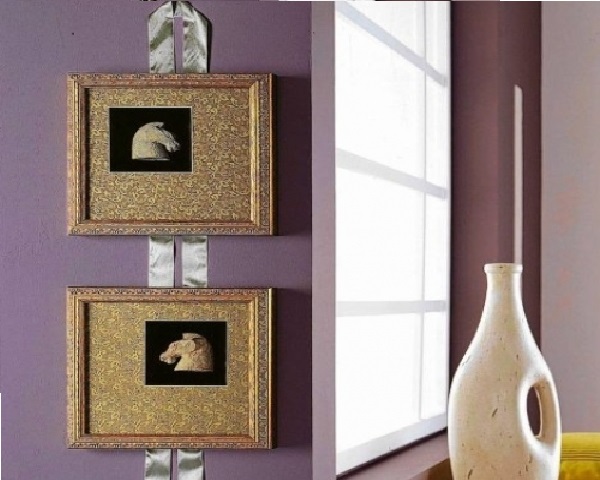 Ruban décoratif ou un harnais décoratif peut également être utilisé comme attache. Avec lui, vous pouvez organiser de petites images ou des photos d'une manière plus originale. À l'emplacement souhaité, vous devez effectuer l'un des crochets ci-dessus. Prenez la bande avec les bords traités, pliez-la en deux et attachez-la à un crochet. Vous obtiendrez deux extrémités libres. Nous y placerons des photos. Si vous n'aimez pas vraiment le nœud au milieu du mur d'un point de vue esthétique, vous pouvez attacher un arc soigné et un autre nœud pour que l'arc ne se détache pas sous le poids des articles. Vous pouvez attacher l'arc séparément et simplement le coller sur le nœud plus tard. Il existe de nombreuses options pour décorer le lieu de fixation du ruban, allant des fleurs artificielles aux belles perles. Construisez sur l'intérieur global. Pour fixer l'image sur les extrémités de la bande, il est nécessaire de mettre un peu de colle sur leur face arrière. Et pour plus de fiabilité, vous pouvez couper des bandes de papier épais et les coller sur le ruban. En alternant la hauteur de la disposition des éléments décoratifs, vous pouvez créer un collage très inhabituel.