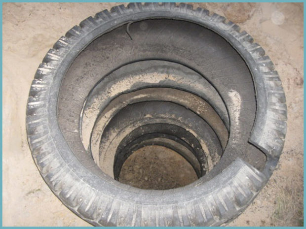 - Une autre option pour collecter les eaux usées est cloaque. Pour l'équiper, il faut creuser environ 2m3 de terrain. Il s'agit de la quantité optimale qui garantira une utilisation à long terme. Au fond de la fosse, un coussin de drainage est fait de sable et de gravier, et les murs doivent être renforcés et rendus imperméables.Vous pouvez les recouvrir de briques, utiliser des anneaux de béton prêts à l'emploi, ou vous pouvez renforcer la fosse avec de vieux pneus en caoutchouc. Lors de l'équipement d'un trou de vidange, n'oubliez pas qu'il doit être pompé. À cet égard, il doit être situé dans un endroit où un accès sans entrave d'équipement spécial sera fourni. De plus, la fosse doit avoir une distance du bâtiment résidentiel d'au moins 3-4 mètres, car la formation d'odeurs caractéristiques est possible.