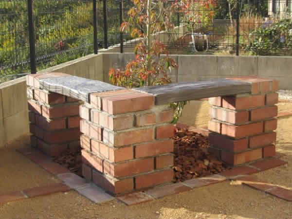 Pour commencer poser la brique avec vinaigrette. La largeur de la maçonnerie est déterminée par la largeur du banc lui-même. Il peut être identique ou un peu plus étroit. La hauteur de la maçonnerie sera d'environ 50 cm. Sur la rangée supérieure de la maçonnerie, il est nécessaire de laisser une place pour la formation d'une étagère dans laquelle les barres en bois du siège seront posées à l'avenir. Ils doivent d'abord être fixés ensemble à l'aide de planches transversales et de vis autotaraudeuses. Le siège fini est empilé dans des étagères en brique. Pour fixer des planches de bois sur une surface en brique, vous pouvez les planter sur le même mortier. Le nombre de casiers à briques dépendra de la longueur du banc.