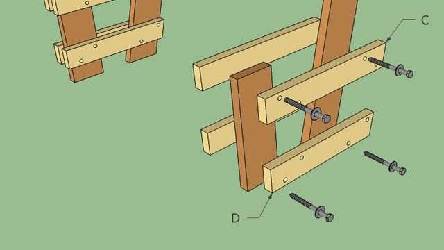 Nous avons mentionné ci-dessus que la conception peut être mobile ou fixée de manière rigide. Cela augmentera sa durabilité. Mais gardez à l'esprit que si vous prévoyez creuser dans les jambes dans le sol, ils doivent être au moins 30 cm plus longs. C'est à cette profondeur qu'ils plongeront. Lorsque tous les éléments sont coupés et polis, vous pouvez commencer l'assemblage. Pour ce faire, nous avons besoin d'un tournevis et de vis. Le travail doit commencer par l'assemblage des pieds latéraux et des barres transversales. Au lieu de chaque connexion de deux pièces en bois, au moins deux attaches doivent être réalisées. donc la conception sortira plus fiable.