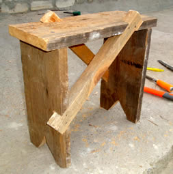 En tant qu'entretoise, vous pouvez utiliser les barres diagonales. Pour ce faire, le siège sous eux est découpé dans le siège et les parois latérales. Vous pouvez les fixer à l'aide de coins métalliques à l'intérieur. Après cela, les parties saillantes sont sciées et rectifiées. En moins d'une heure, votre boutique sera prête.Si le revêtement est encore endommagé lors du montage, nettoyez la zone affectée et repeignez-la. Ensuite, broyez et enduisez une deuxième fois.