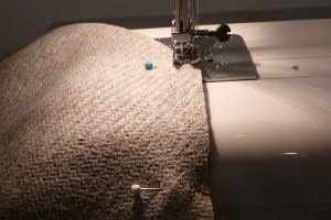 - Maintenant, vous devez coudre des couvertures sur les parois latérales et d'autres éléments, si c'était à l'origine. C'est bien si vous avez une machine à coudre chez vous et que vous l'utilisez. Sinon, vous devez demander de l'aide au studio et être sûr de demander que tous les bords soient traités avec un surjet. Vous protégez ainsi les bords des déchirures. Il est très important de surveiller la direction des fils de trame et de chaîne. Ils devraient correspondre sur tous les détails. Il est très simple de déterminer cela - le fil d'un canard s'étire, le fil de chaîne - non.