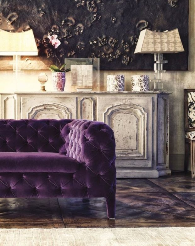 - Tissu laineux, par exemple velours ou peluchesont très délicats et délicats. Ils perdent rapidement leur couleur sous l'influence des rayons ultraviolets, ont un faible degré de résistance à l'abrasion, ce qui les rend impropres au rembourrage, qui sera utilisé quotidiennement. Une exception est le matériel appelé troupeau avec une imbrication diagonale de fibres, qui en apparence ressemble à du velours. Il est légèrement moins durable que la microfibre, mais il est plus attrayant et convient au rembourrage d'un canapé dans le salon. L'avantage du troupeau est sa résistance aux aliments et autres contaminants. Le troupeau moderne a un revêtement spécial en silicone et sa surface est très douce et agréable au toucher.