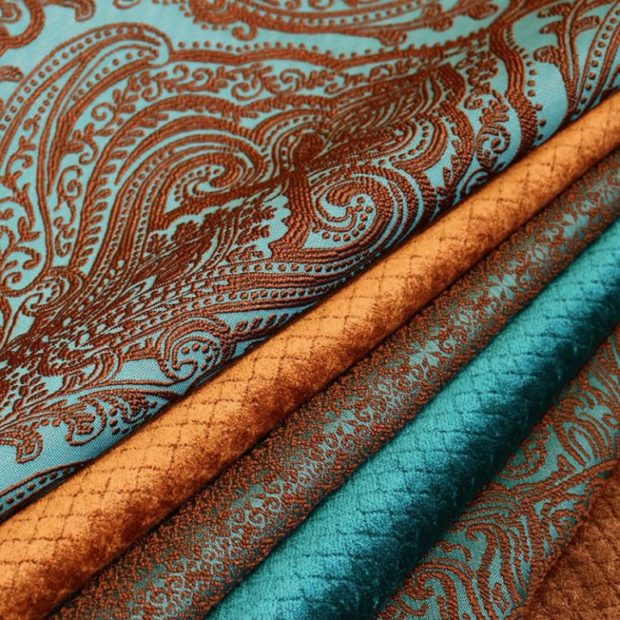 - Un matériau chic mais cher est jacquard. Il se caractérise par des performances élevées et une palette riche et diversifiée de couleurs et de textures. Sa surface ne s'use pratiquement pas et ne se décolore pas. Le tissu lui-même est très dense et durable. Cependant, si vous avez des animaux ou des enfants, cela vaut la peine d'être considéré, car il est très difficile de prendre soin du jacquard. Il ne tolère pas le contact avec un chiffon humide et convient mieux aux intérieurs classiqueset sa surface est froide au toucher.