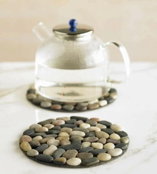 - Le support sera plus dense et résistant à la chaleur si un petit galet de mer, des perles de verre ou des galets décoratifs y sont collés. Une façon intéressante de décorer - entière grains de café. Ces beaux et beaux objets rendront le thé plus agréable à boire. Vous pouvez fixer le décor sur superglue ou à l'aide d'un pistolet thermique. Il est recommandé d'ouvrir la surface avec du vernis.