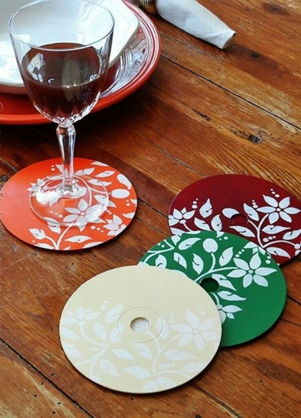 - Les dessous de verre les plus simples ressemblent à des disques peints. Quelqu'un voudra peindre le disque des deux côtés, quelqu'un laissera le côté brillant intact - le choix vous appartient. À ces fins, le plus approprié peintures acryliques. Vous pouvez appliquer une couche dense de peinture sur la surface, puis utiliser un cure-dent pour «gratter» n'importe quel motif. L'excès de peinture peut être facilement enlevé et de belles lignes brillantes resteront devant vous. Vous pouvez immédiatement appliquer l'ornement avec des peintures à main levée ou utiliser un pochoir. Après séchage complet, vous pouvez mettre en toute sécurité des plats chauds sur le support. Vous pouvez protéger la couche de peinture avec deux boules de vernis acrylique.