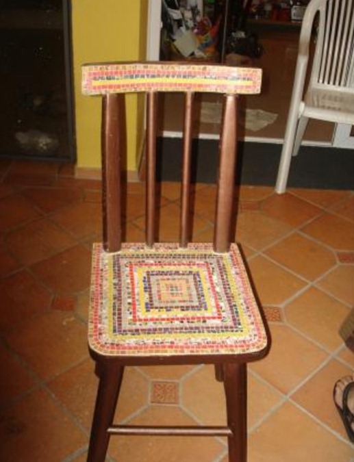 - Pour rendre la chaise plus harmonieuse, collez-la sur la mosaïque et le dossier;