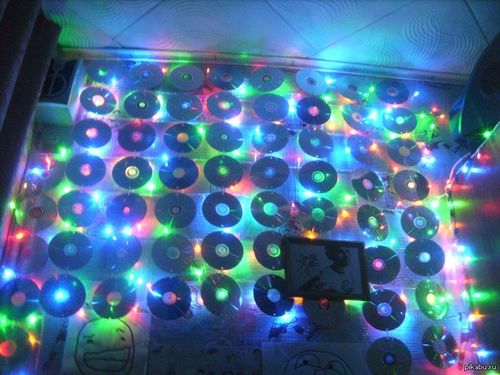 De cette manière simple, vous pouvez ériger des cloisons entières, les rendre immobiles, fixer en plus le bord inférieur et équiper des zones de loisirs entières. Et si le tissage est mince dans les espaces entre les disques nouvelle année guirlandes, vous obtenez quelque chose d'inimaginable!