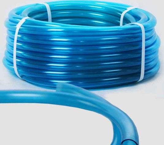 Les produits en chlorure de polyvinyle peuvent être soit les plus primitifs - monocouche sans couche de renforcement, soit plus durables et fiables - trois couches avec un revêtement réfléchissant. Veuillez noter que les tuyaux transparents ne sont pas recommandés pour la pose le long des lits, car sous l'influence des rayons ultraviolets, au fil du temps, sa surface intérieure devient verte et est envahie de micro-organismes.