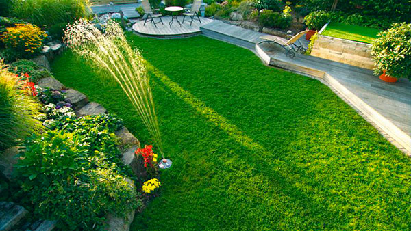 - En été Le soin principal est des coupes de cheveux régulières et un arrosage rapide. Il n'est pas recommandé de tondre l'herbe en dessous de 5 cm. Après la coupe, assurez-vous d'arroser. Dans les mois particulièrement chauds, l'arrosage doit être augmenté. C'est mieux arroser la pelouse deux fois par jour - matin et soir. Évitez d'arroser pendant la journée, les pousses humides peuvent brûler sous les rayons brûlants et jaunir. Les arroseurs automatiques sont les mieux adaptés pour arroser la pelouse.