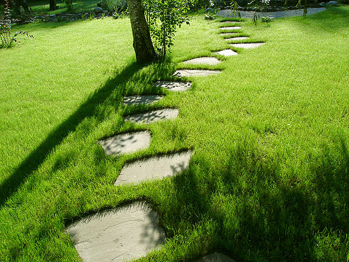 Beaucoup aiment vraiment l'idée d'organiser pays pistes de pelouse. En effet, ces sentiers verts semblent très inhabituels et égayent. Bien sûr, à ces fins, il vaut la peine de choisir des graines destinées aux pelouses sportives ou aux pelouses roulées. Mais dans les endroits les plus utiles, où les pieds des invités et des membres de la famille marchent avec une régularité enviable et presque au même endroit, même de telles variétés d'herbes résistantes ne résistent pas. Ils sont destinés à des déplacements intensifs, mais sur tout le site, et non le long de sa pièce étroite. Pour conserver une verdure agréable, mais pas pour renoncer à votre envie, déposez en plus des coupes en bois ou des petites bûches sur le chemin sur lequel vous pouvez marcher sans crainte.