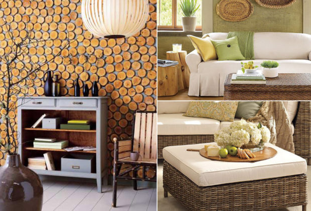 Le style Eco est suffisant retenu et en termes de nombre d'objets décoratifs à l'intérieur. Qu'il soit préférable d'être un, mais un grand objet, autour duquel se construit alors l'image globale, que de nombreux petits. Les objets eux-mêmes doivent nécessairement être d'origine naturelle et agréables au toucher. Peut utiliser éléments suivants: