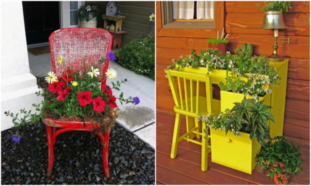 Idée numéro 8. Parterre de fleurs inhabituel fait de vieux meubles