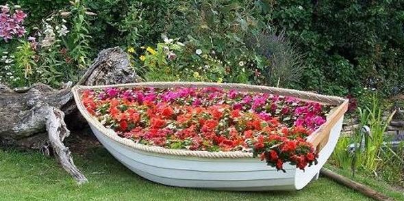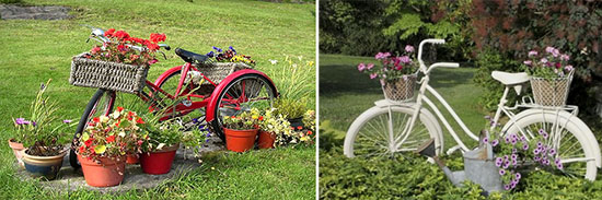 De la même manière qu'avec l'ancienne salle de bain, vous pouvez le faire avec un vieux bateau rouillé ou un vélo cassé. Éliminez les zones affectées par la rouille. Peignez dans votre couleur préférée. Positionné sous un angle intéressant, coudes sur de grosses pierres. Ajoutez un bac à fleurs sur le siège du vélo. Accrochez quelques pots sur le volant. Remplissez le bateau de terre, plantez de petits buissons, saupoudrez de galets de mer à proximité et la composition inhabituelle est prête! Après avoir fait preuve d'imagination, vous pouvez faire des mini-lits des choses les plus inattendues. L'essentiel est que vous l'aimiez.