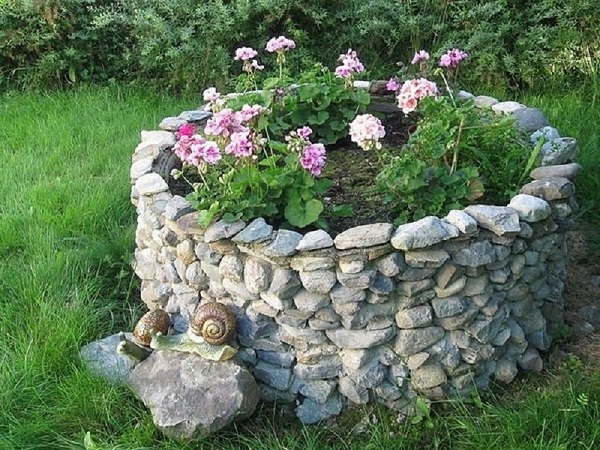Les lits en pierre sont toujours esthétiques et soignés. La combinaison de la pierre et des plantes n'est jamais ennuyeuse. Nous suggérons d'utiliser différents types de pierres pour former des motifs inhabituels. Quelle que soit l'idée qui vous vient à l'esprit, la principale chose à laquelle vous devez vous en tenir est Faits saillants: