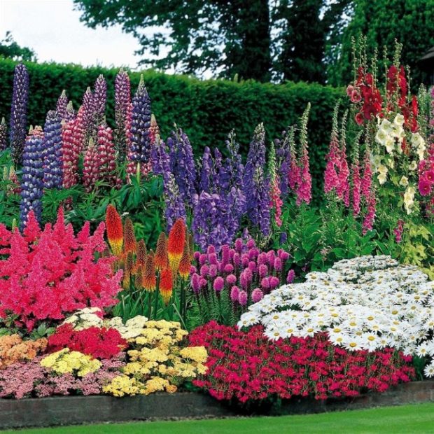- Mixborder - Une trouvaille pour les vrais amoureux de toutes sortes de fleurs, qui ne peuvent pas choisir une variété particulière. Les plantes sont sélectionnées de manière absolument différente en hauteur, couleur et saison de floraison. Ainsi, un tel parterre de fleurs peut vous plaire presque toute l'année.
