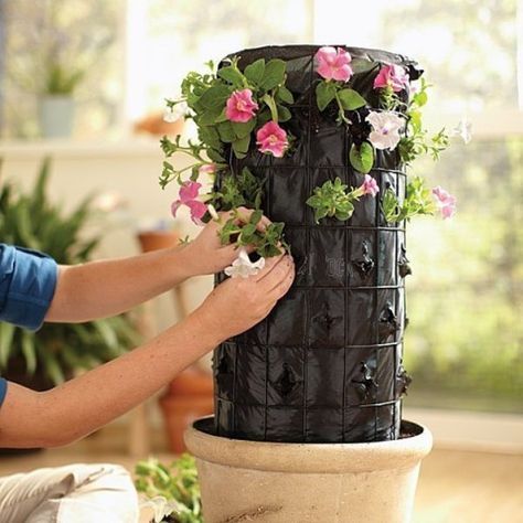 La hauteur de ces structures ne doit pas dépasser 60 à 70 cm, sinon la grille peut tout simplement ne pas résister à la charge et au pliage. Mais vous pouvez créer une composition de plusieurs parterres de fleurs verticaux de différentes tailles. Et si vous avez assez de patience, formez de petites colonnes de cette manière, par exemple, autour d'un gazebo ou d'un autre objet.