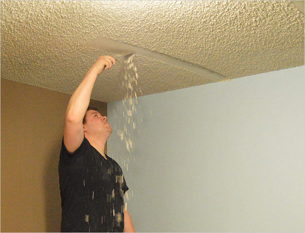 Le processus d'élimination du vieux plâtre du plafond est considéré surtout lourd processus. Cela est dû au fait que vous devez travailler dans une position où les mains sont constamment levées. Ils deviennent rapidement fatigués et engourdis, plus de pauses sont nécessaires.