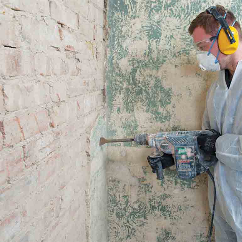 Les zones qui n'ont pas succombé aux coups d'un outil à main devront être nettoyées à l'aide d'un outil électrique. Soyez prêt pour effort physique intense et beaucoup de poussière.