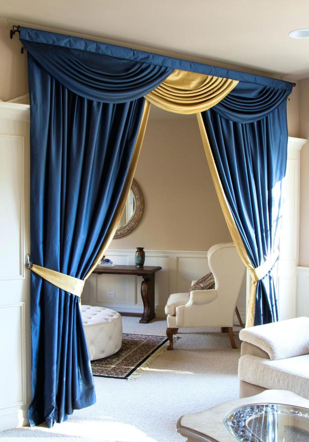 La seule chose à ne pas faire est de choisir des rideaux roulés ou chinois ou des stores verticaux en tissu pour la décoration. Passer entre les chambres dans ce cas sera très gênant.
