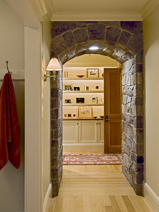 - Si tu veux faire lâche ouvrir un moment fort locaux, vous devez l'organiser de telle sorte qu'il ne semble pas solitaire. Pour ce faire, sélectionnez des matériaux de finition déjà présents à l'intérieur. Par exemple, votre porte est entre le salon et le couloir. En même temps dans le salon cheminéeconstruit dans la niche du mur et maçonné ou un autre type de pierre. Il est logique d'utiliser le même type de décoration pour la porte. Dans ce cas, le revêtement doit être présent non seulement sur la surface intérieure, mais aussi aller au mur autour de l'ouverture. Il est important de ne pas en faire trop et garder l'équilibre entre la largeur de l'ouverture et la largeur de la zone de garniture. Plus l'ouverture est large, plus elle peut être épaisse. À finition pierre pour donner un aspect naturel, la maçonnerie doit avoir une grande largeur à partir du bas et se rétrécir progressivement. Aussi mérite d'être appelé et couleur finitions. Par exemple, les boiseries peuvent être assorties à la couleur revêtement de sol stratifiémeubles ou plinthes. Ainsi, l'intérieur aura un aspect holistique et harmonieux;