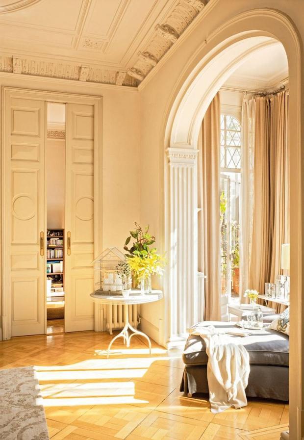 C'est l'une des façons les plus chics de décorer une porte dans une pièce de style bohème. Le stuc de gypse naturel a toujours été très apprécié. Même lorsque, au fil du temps, sa surface se couvre d'un filet de petites fissures, elle n'en devient pas moins attrayante. Au contraire, cela lui donne un charme particulier.