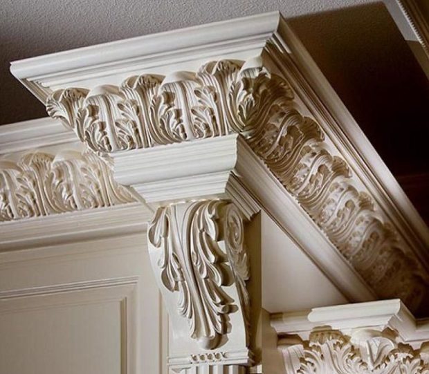 La moulure en stuc peut varier un peu, recouvrant certains éléments de dorure. Seule chose nécessaire considérer c'est poids décor similaire. Parfois, c'est assez impressionnant, ce qui rend l'installation difficile. De plus, le gypse lui-même est très fragile. Par conséquent, vous devez faire très attention à ne pas faire de jetons. Pour simplifier la tâche, très souvent du vrai gypse remplacé par du polyuréthane. Dans de nombreux magasins, vous pouvez trouver de nombreux éléments prêts à l'emploi à partir desquels vous pouvez créer des compositions uniques.