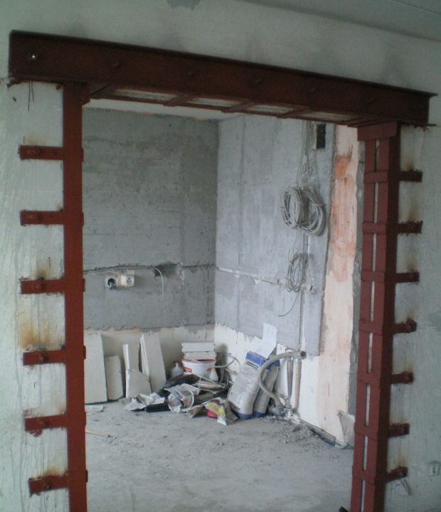 - Donnez à l'ouverture la largeur souhaitée. Selon le matériau du mur, vous devrez utiliser différents outil électrique. À partir de broyeurs, qui peut être coupé à travers les cloisons de gypse et se terminant perforateur. Dans le même temps, rappelez-vous que que ce soit une ouverture dans un mur porteur ou dans un mur qui agit comme un diaphragme, il supportera toujours une charge.Très souvent, les portes agissent comme un élément de puissance. Dans les coins ou au-dessus de l'ouverture, vous pouvez trouver des barres en bois ou des coins en fer. Vous ne pouvez pas récupérer ces éléments. Et si c'est une mesure nécessaire, une ouverture prête à l'emploi doit être renforcée. Sous la charge de matériaux de finition lourds tels que la pierre naturelle ou tuile de briquel'ouverture non renforcée rétrécit. Des fissures peuvent se former sur les murs;