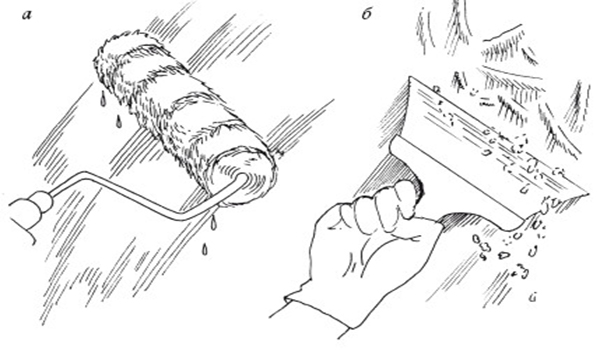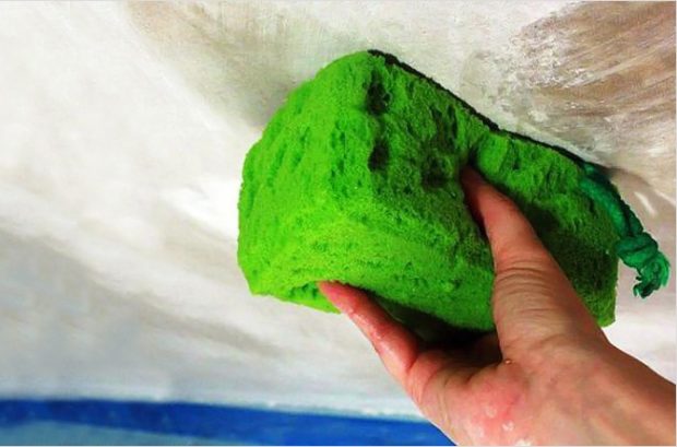 Cette méthode ne sera pas si sale et poussiéreuse. Pour vous faciliter la tâche, vous avez besoin d'un bon adoucir le badigeon. Pour ce faire, saturez la surface d'eau. Choisissez l'outil le plus pratique et le plus facile à utiliser. La surface peut être humidifiée avec un rouleau en mousse ou simplement pulvérisée avec un pistolet pulvérisateur. Si la surface à traiter a une grande surface, pas besoin d'essayer de la recouvrir immédiatement dans son ensemble. Divisez-le en petits fragments. La taille optimale est le mètre par mètre.