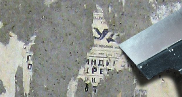 Les vieux journaux, qui se trouvent probablement dans presque tous les foyers, peuvent grandement faciliter votre travail. Cette méthode est bonne pour une utilisation à la fois sur la surface du plafond et sur les murs. Nous aurons besoin de la même pâte ou colle à papier peint, qui doit être appliquée uniformément sur la surface. Vous avez besoin coller des feuilles de journaux. Pas besoin de superposer les feuilles. Laisser un petit jeu le long du contour entre chacun. Un des bords de la feuille doit être plié et non collé. Lorsque le mélange d'érable sèche, commencez doucement à arracher les feuilles de la surface. Pour ce faire, tirez lentement sur le bord libre. Évitez les secousses et les secousses, la feuille peut se déchirer. Le reste du badigeon le long du contour de la feuille peut ensuite être enlevé avec une spatule.
