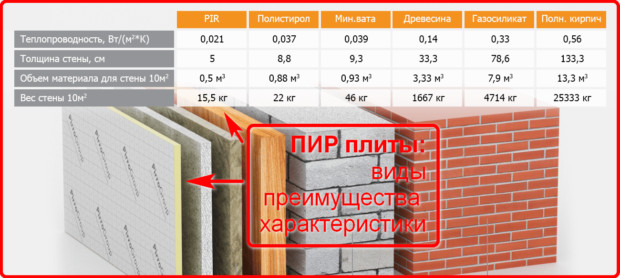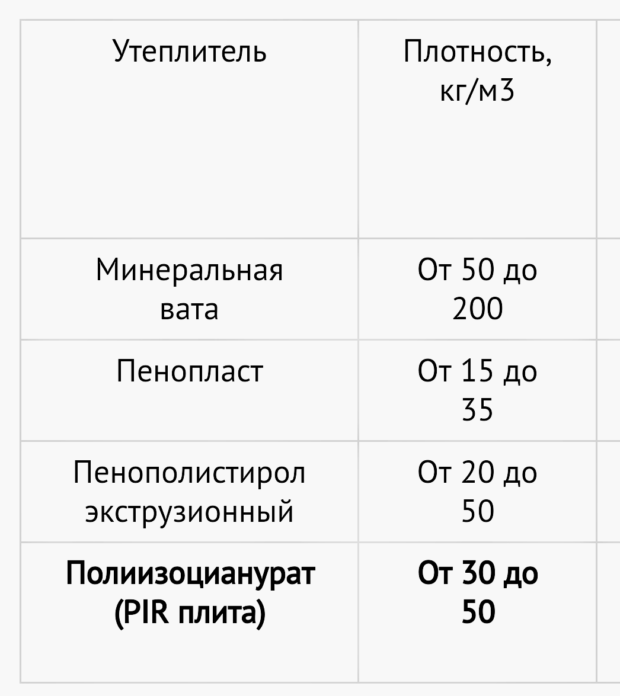 - Le matériau a le plus faible conductivité thermique. Si cet indicateur pour l'air est de 0,024 W / m * k, alors pour PIR, il est de 0,022 W / m * k. Et ce chiffre reste inchangé tout au long du cycle de vie;