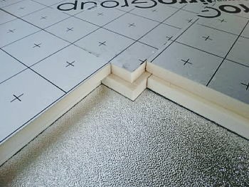 Des dalles pour l'isolation des sols sont également disponibles. Il s'agit d'un carré ou d'un rectangle, équipé de tous les côtés d'une connexion de verrouillage. De plus, le processus d'installation ne nécessite pas l'utilisation de fixations supplémentaires. Un ruban amortisseur est posé autour du périmètre de la pièce, après quoi vous pouvez procéder à la pose directe des plaques. Au-dessus d'un tel revêtement de sol, vous pouvez réaliser une chape de ciment sèche ou humide ou poser le système "plancher chaud".![]()
